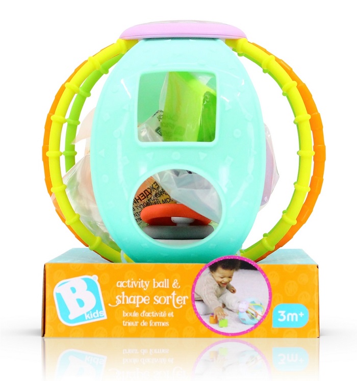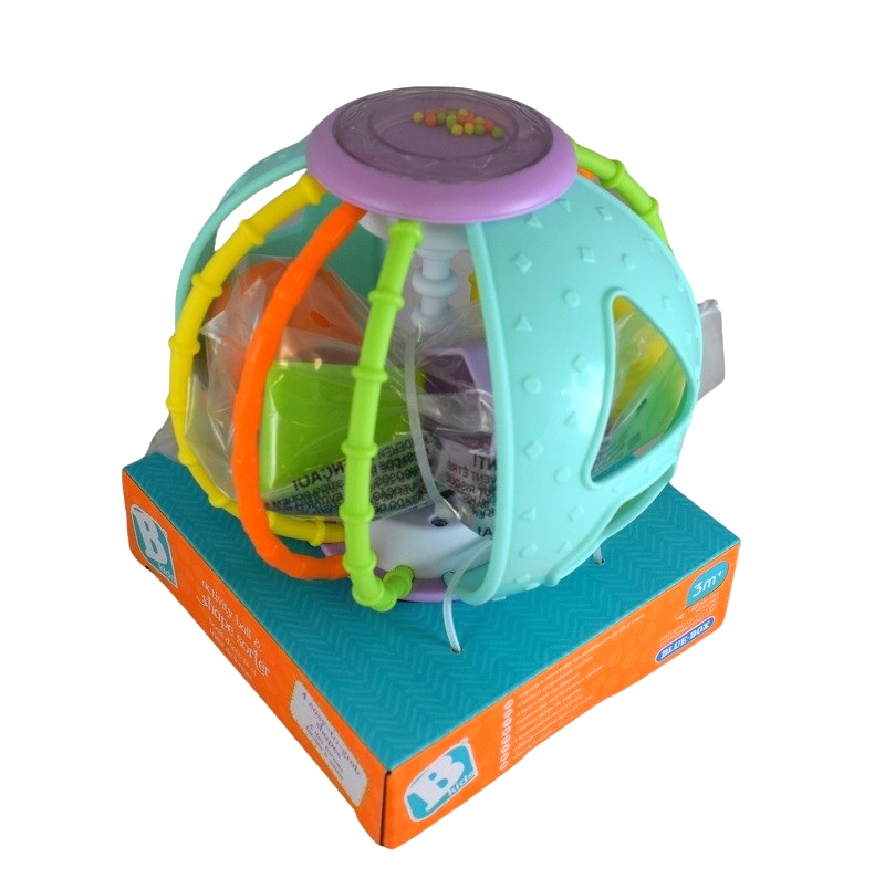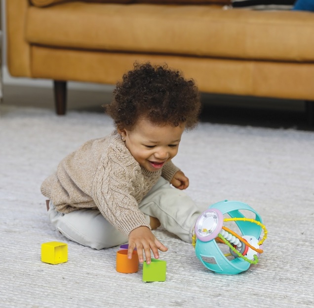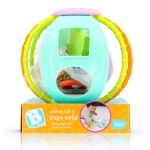 Aktywna piłka pozwala dziecku sortować cztery teksturowane kształty oraz wyginać giękie pręty. Na górze znajdują się kolorowe koraliki, które przy potrząsaniu zabawką, delikatnie grzechorzą.