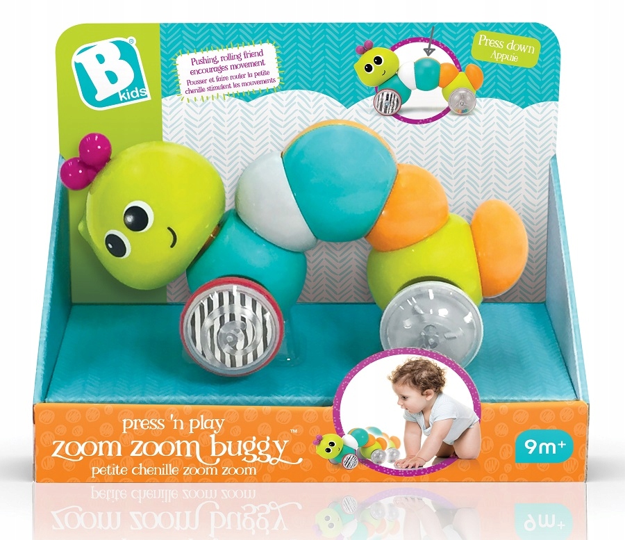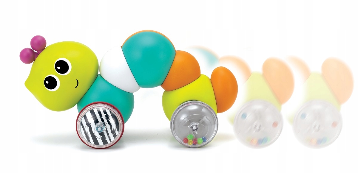 Klasyczna zabawka na kółkach, która zachęca dziecko do poruszania się za nią. Ta sympatyczna gąsieniczka jest idealna do rozwoju wzrokowo-ruchowego dziecka.