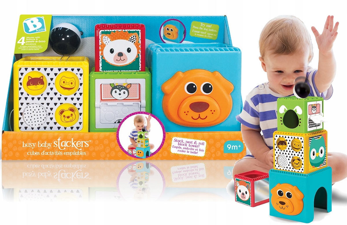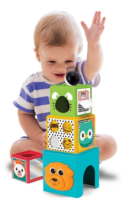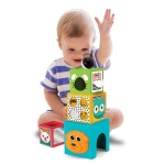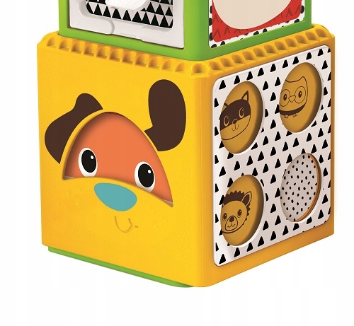 Wielofunkcyjne klocki do układania jeden na drugim tworzą jednocześnie tunel dla piłeczki. Klocki są różnej wielkości i zawierają wesołe zabawy na każdej ze stron.