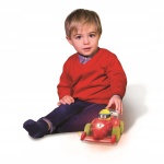 Po naciśnięciu przycisku na górze zabawki zapalają się światła i słychać dźwięki poruszającego się pojazdu.