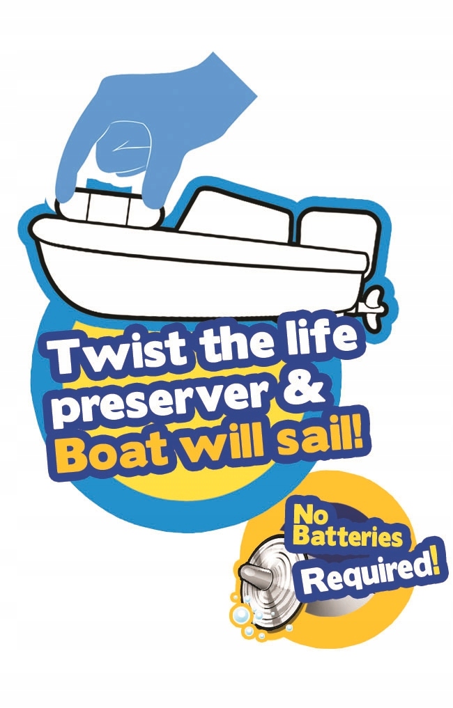 Łódka dzięki specjalnemu nakręcanemu mechanizmowi, nie wymaga baterii.