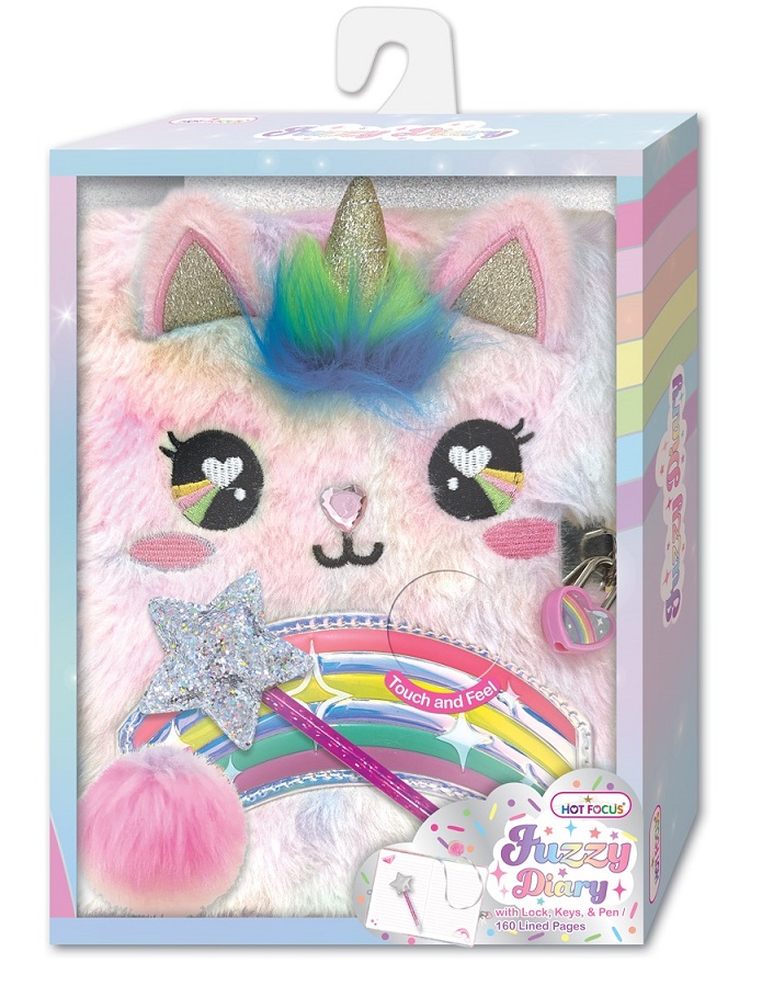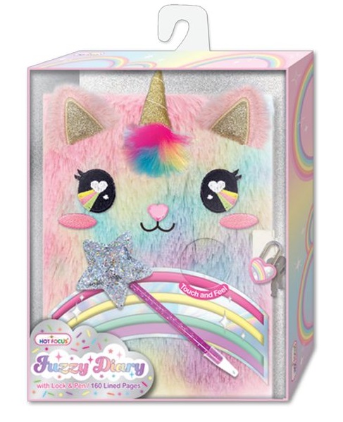 Futrzany pamiętnik na kłódkę z długopisem Jednorożec