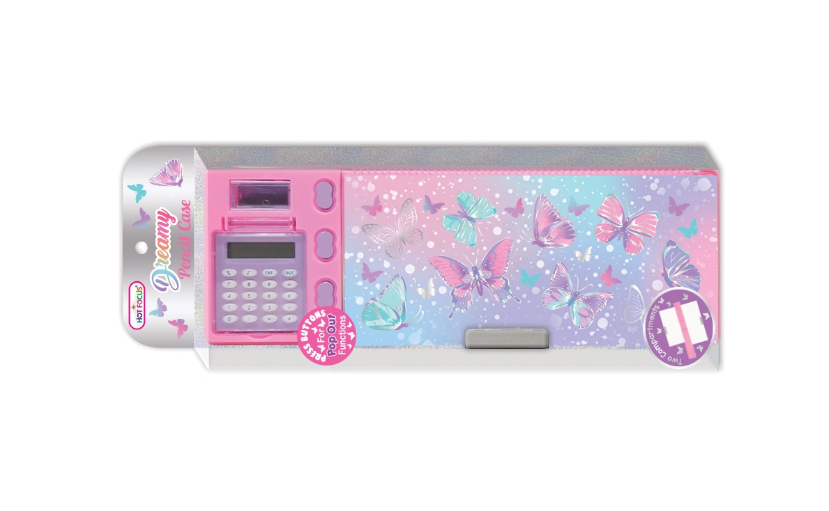 HOT FOCUS 298TB Wielofunkcyjny piórnik z kalkulatorem – Motylki