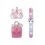 Ten modny mini plecak-breloczek jest idealny do przechowywania monet, kluczy, balsamu do ust i innych małych przedmiotów podczas podróży. W zestawie znajdują się także słuchawki, dzięki czemu dziewczynki mogą słuchać swojej ulubionej muzyki oraz opaska na rękę.