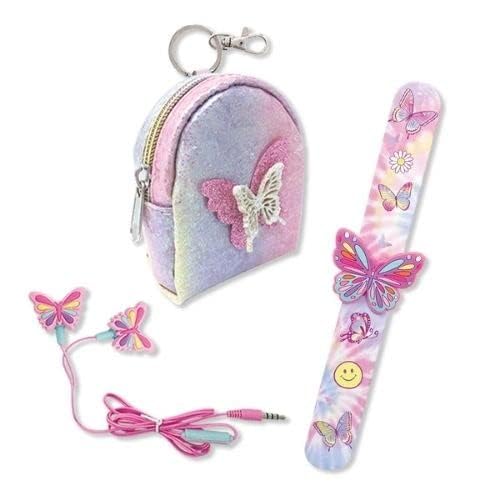 Ten modny mini plecak-breloczek jest idealny do przechowywania monet, kluczy, balsamu do ust i innych małych przedmiotów podczas podróży. W zestawie znajdują się także słuchawki, dzięki czemu dziewczynki mogą słuchać swojej ulubionej muzyki oraz opaska na rękę.