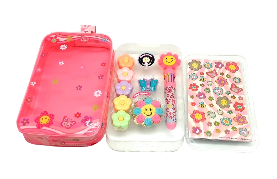 HOT FOCUS Wielokolorowy długopis + zakreślacze kwiatki