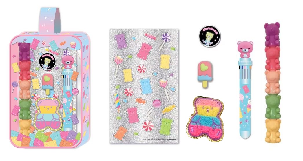 HOT FOCUS Wielokolorowy długopis + zakreślacze misie