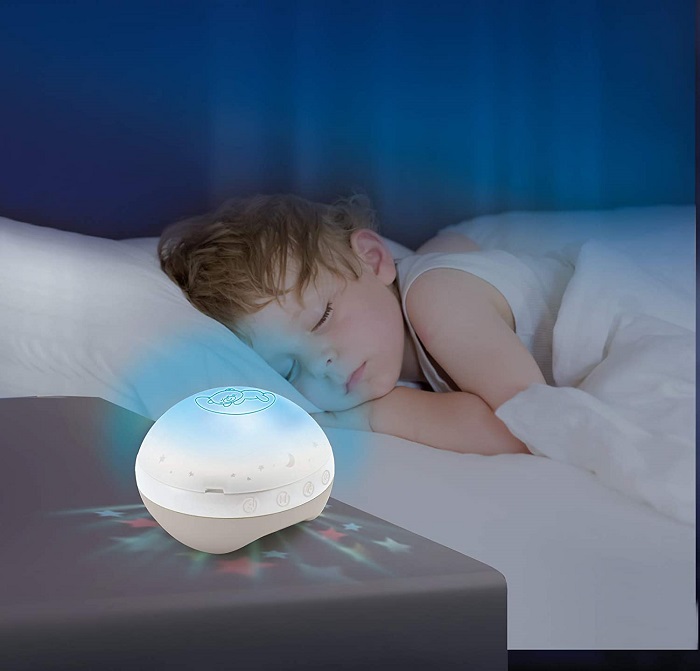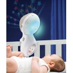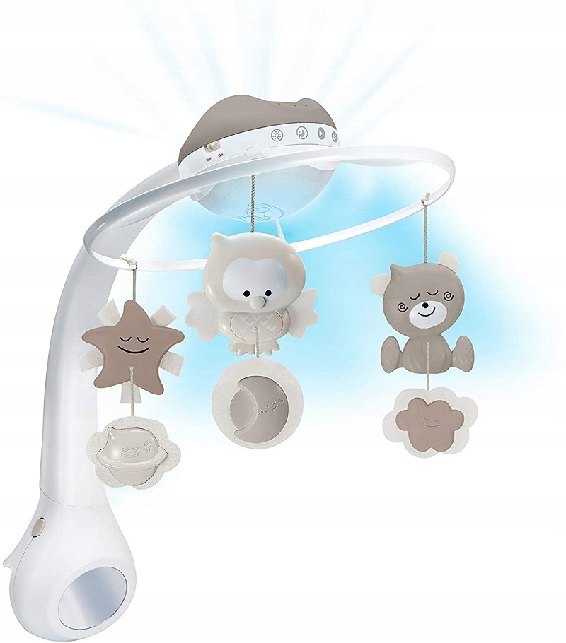 Projektor wyświetla gwiazdki oraz gra kojące melodie, które uspokajają dziecko pomagając mu zasnąć. Na karuzeli, przy dźwiękach muzyki kręcą się urocze zwierzątka.