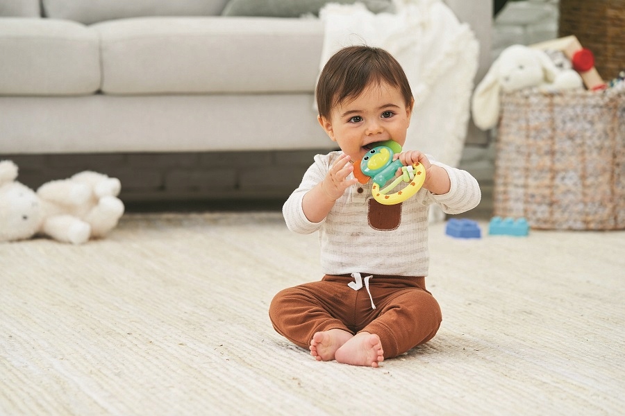 Słonik będzie wesoło grzechotać przy potrząsaniu, a jego uszka to gryzaczki o różnych fakturach.