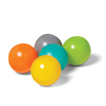 W zestawie: hipopotam, żyrafa, drzewo z małpkami, pięć miękkich piłek i piłka-kokos do kręgli.