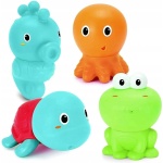 Cztery gumowe zwierzątka wodne mogą być zarówno zabawkami jak i psikawkami na wodę.