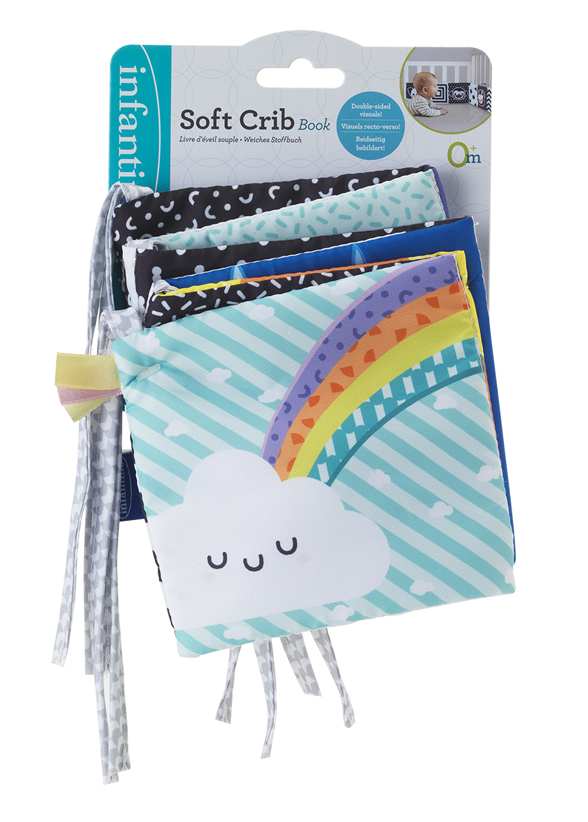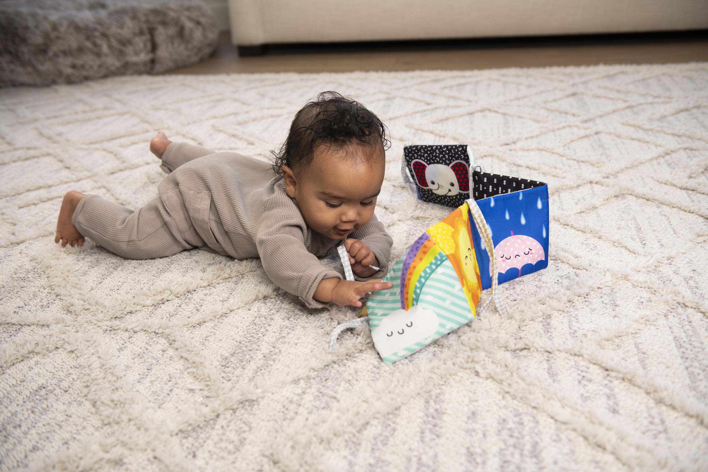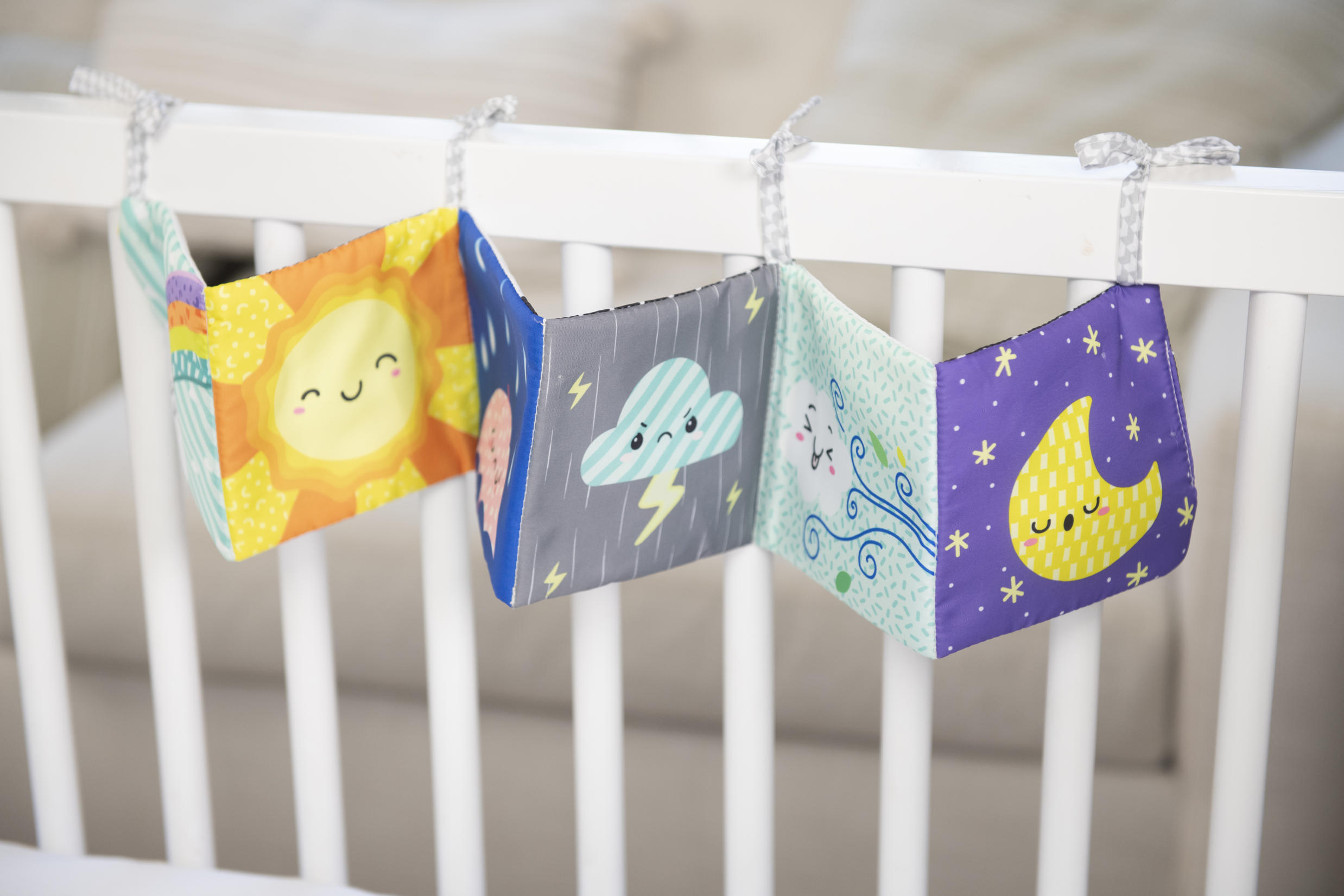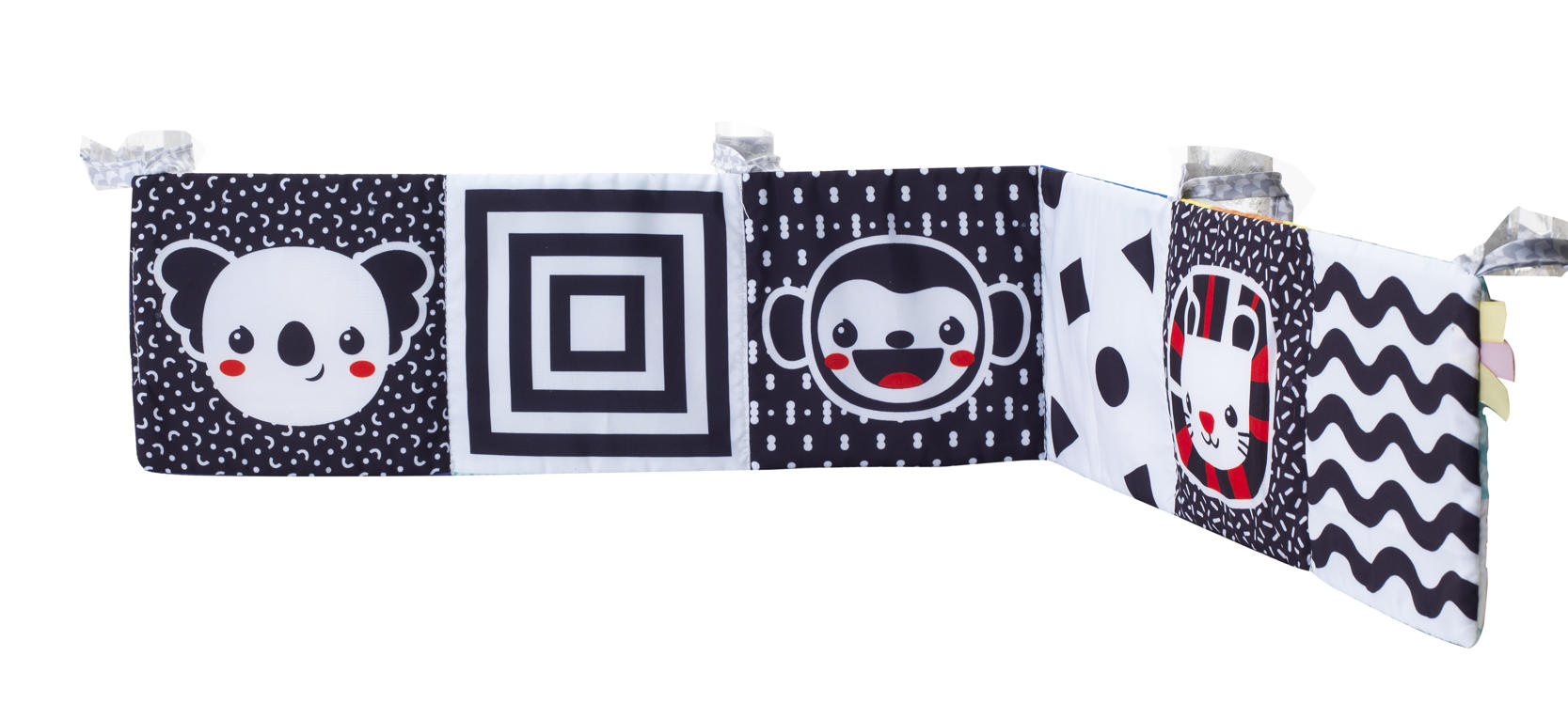 Lekka materiałowa książeczka zaprojektowana z myślą o wspieraniu rozwoju dziecka od pierwszego miesiąca życia.