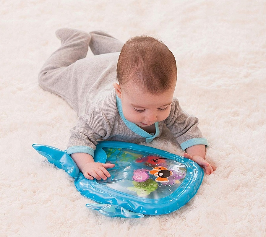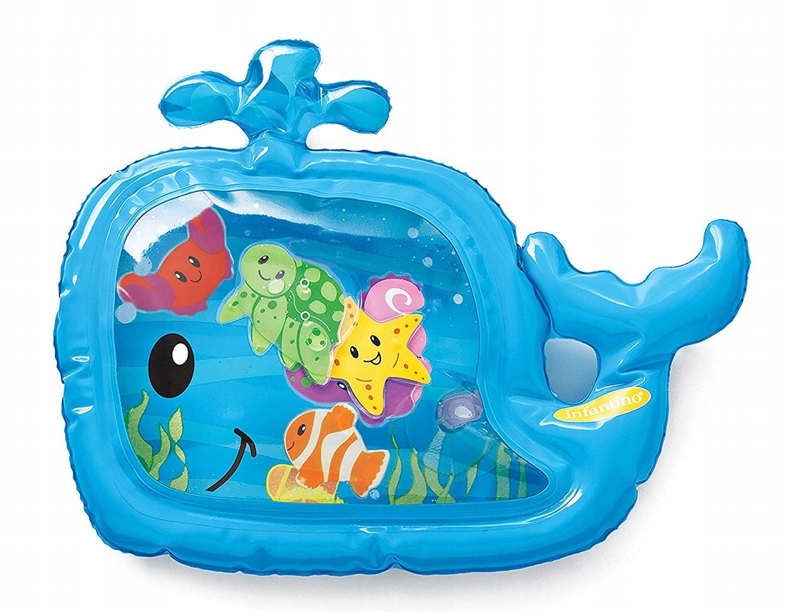 Wodna mata wieloryb doskonała do zabawy, gdy dziecko leży na brzuszku lub siedzi na krzesełku.