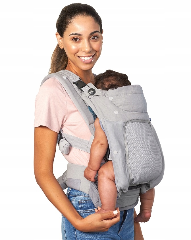 - Ostrzeżenia na opakowaniu: Waga: 3,6-18,1kg Wielofunkcyjne nosidełko, które dzięki specjalnym materiałom będzie odpowiednie na każdą porę roku. W sumie zawiera 2 dodatkowe osłony, wodoodporny pokrowiec i kapturek. Na słoneczne dni – muślinowy kapturek, który będzie też idealny podczas snu. Na ciepłe dni – panel z „oddychającego” przepuszczającego powietrze materiału. Na chłodniejsze dni – dodatkowa bawełniana osłona na panel nosidełka. Na zimne dni – druga bawełniana osłona dla utrzymania ciepła. Na deszczowe i śnieżne dni – wodoodporny pokrowiec. Z przodu pasa biodrowego znajduje się saszetka zapinana na zamek, w której zmieszczą się drobne przedmioty. – System pasków rozprowadzających wagę dziecka w sposób zwiększający wygodę dziecka i noszącego, pozwoli dziecku podróżować w naturalnej pozycji siedzącej – Szeroki pas biodrowy rozłoży wagę dziecka równomiernie na noszącego – Ergonomiczne regulowane siedzisko dopasowuje się do kształtów dziecka. Można go używać w wersji szerokiej i wąskiej. Otwory na nogi, paski i pas biodrowy pozwolą na pełną regulację dopasowania – Usztywniane ramiączka z pluszową wyściółką i dodatkowym podbiciem, które zapewnią bezpieczeństwo i większą stabilność, ale jednocześnie zapewnią komfort noszącemu przy długim użytkowaniem – Regulacja podparcia głowy zapewnia dodatkowy komfort – Możliwość noszenia w 4 pozycjach: Dziecko przodem do noszącego w wąskim siedzisku – do momentu aż dziecko będzie samodzielnie trzymać głowę pionowo jest to dla niego prawidłowa pozycja, daje dużą dawkę kontaktu fizycznego i uwagi, a jednocześnie zostawia noszącemu wolne ręce. W tej pozycji można bawić się z dzieckiem i utrzymywać z nim kontakt przez dotyk, zabawę lub wzrokowy; Dziecko przodem w szerokim siedzisku – szerokie siedzisko pozwala na noszenie większych dzieci w pozycji siedzącej z nogami obejmującymi noszącego; Dziecko tyłem w wąskim siedzisku – pozycja ta pozwala dziecku poznawać wzrokowo otoczenie, a jednocześnie pozostać w bliskim kontakcie z noszącą je osobą, nigdy nie należy używać szerokiego siedziska podczas noszenia dziecka w pozycji twarzą na zewnątrz; Dziecko przodem na plecach rodziców dla dzieci będących w stanie całkowicie samodzielnie siadać. W tej pozycji dziecko może sprawdzać co się dzieje dookoła, ale nadal wie, że rodzic jest tuż obok. – Pozwala na noszenie dziecka w pozycji ‘fizjologicznej żaby’ rekomendowanej przez Międzynarodowy Instytut Dysplazji Biodrowej – nogi dziecka rozłożone wokół talii noszącego, biodra zgięte tak, aby kolana były nieco wyżej, a pośladki i uda były podpierane. Udo wspierane jest przez staw kolanowy, dzięki temu nacisk na biodro jest minimalny ponieważ nogi są rozłożone, podpierane, a biodra są w stabilnej pozycji. Pozycja ta zapewnia prawidłowy rozwój stawów biodrowych, kręgosłupa i miednicy – Noszenie bliżej ciała i wyżej na plecach lub klatce piersiowej zminimalizuje obciążenie kręgosłupa i ramion wynikające z długotrwałego użytkowania ZALECANY WIEK PRZEZ PRODUCENTA: 0M+ / OBOWIĄZEK SKONSULTOWANIA SIĘ Z LEKARZEM W PRZYPADKU DZIECI URODZONYCH Z NISKĄ WAGĄ LUB PROBLEMAMI ZDROWOTNYMI Wyprodukowano w Chinach