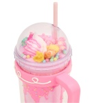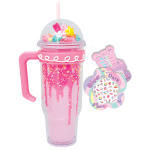Zakręcany ozdobną nakrętką. Do kubka dołączona jest wielorazowa słomka oraz arkusz naklejek świecących w ciemności, którymi można dodatkowo ozdobić i wyróżnić swój kubek!