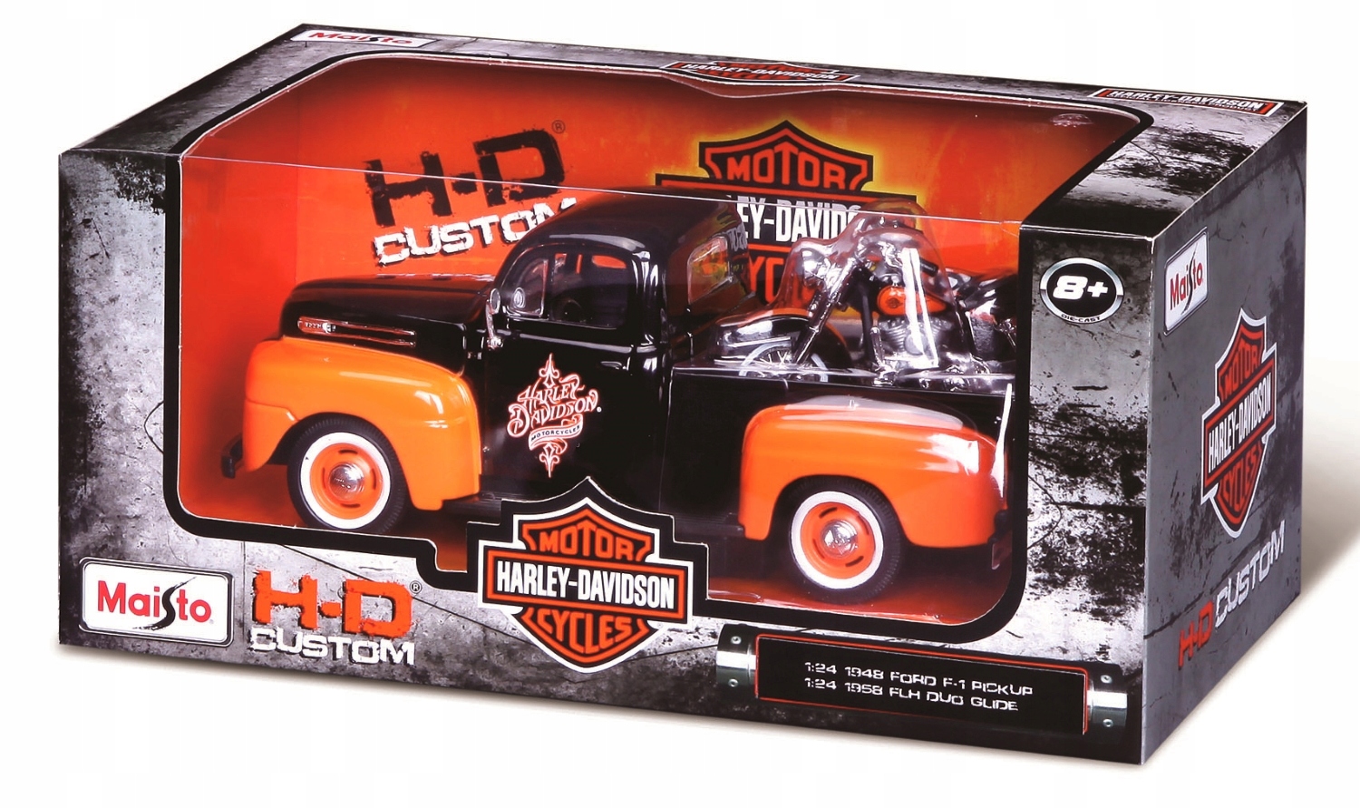 MAISTO Zestaw H-D CUSTOM Ford F-1 Pickup 1948 + motocykl Harley-Davidson FLH DUO GLIDE 1958