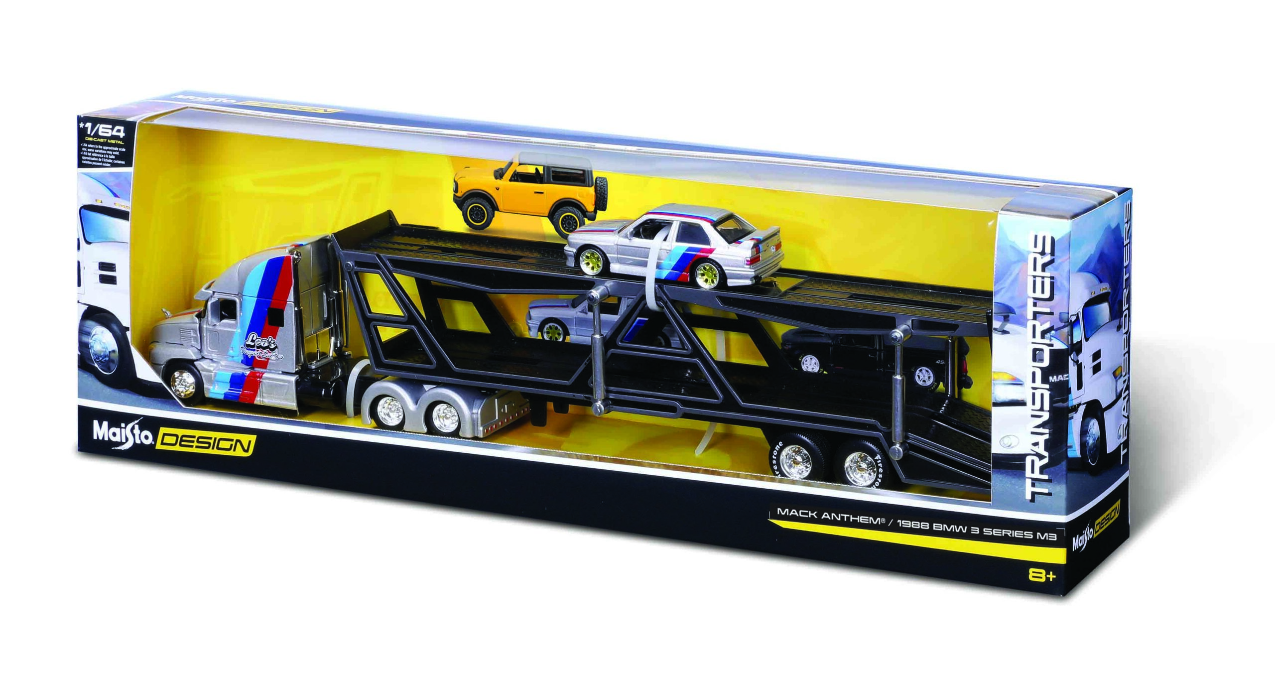 MAISTO Design Transporters Laweta 2-piętrowa Mack Anthem + 1993 Chevrolet 454 SS PICK-UP