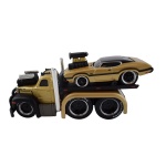 W zestawie 2 pojazdy: laweta z wysuwaną i opuszczaną platformą (Mack B-61 1953) oraz samochód osobowy (Oldsmobile 1970).