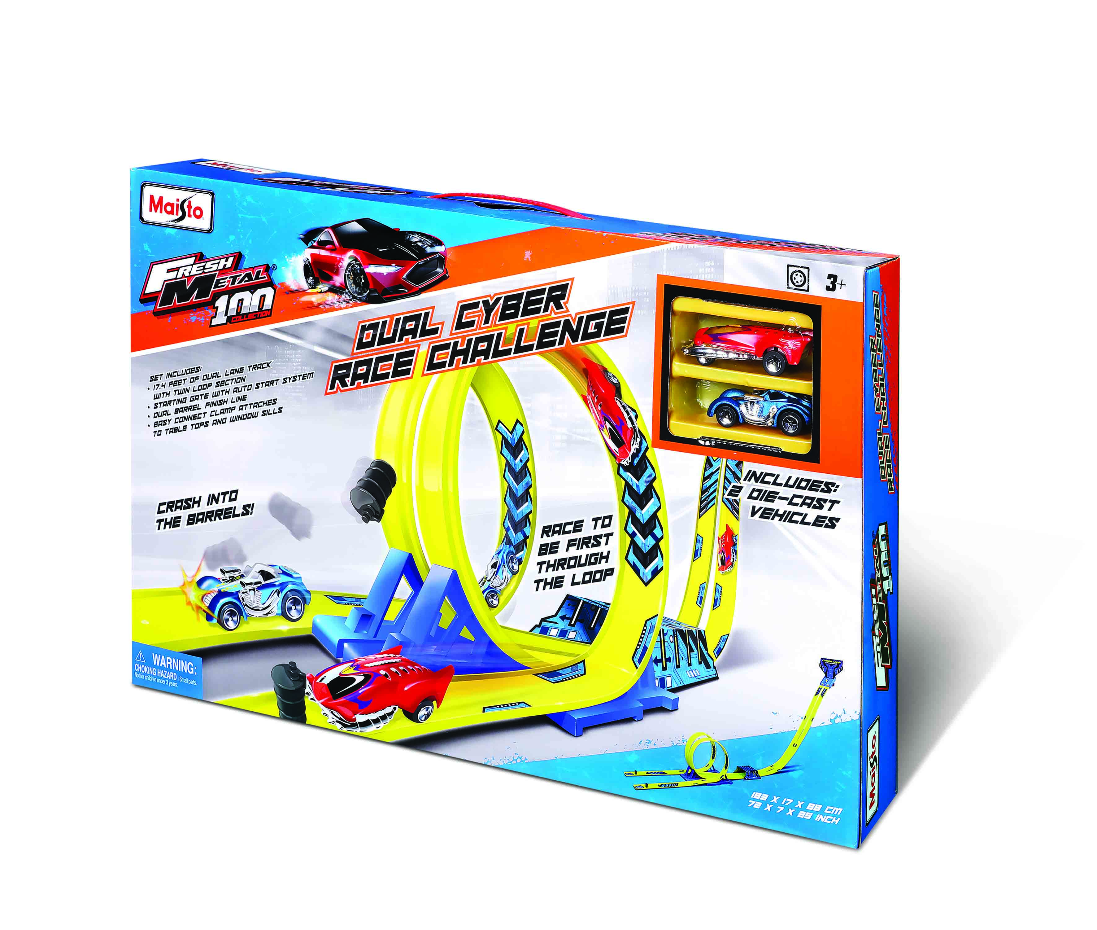 Tor z dwoma pętlami oraz wyrzytnią zapewni mnóstwo niesamowitej zabawy. Ścigaj się, aby jako pierwszy pokonać pętle! Zderz się jako pierwszy z beczką na końcu toru!