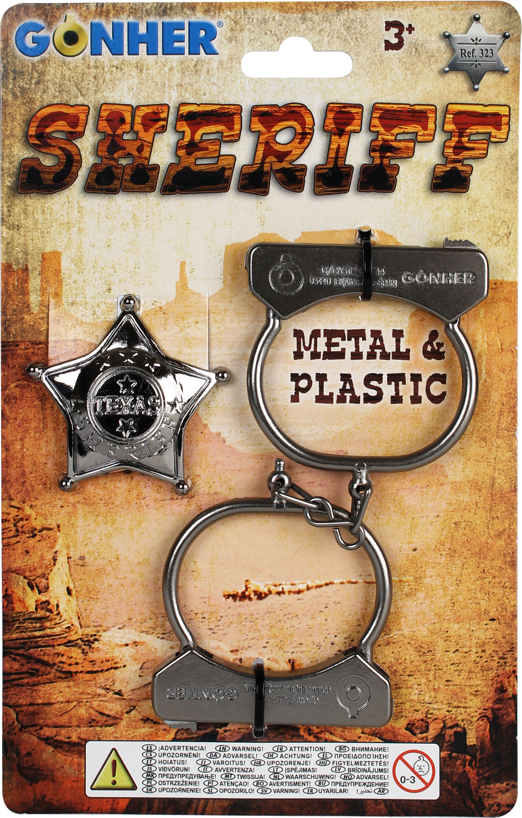 Metalowa odznaka szeryfa i kajdanki marki Gonher.