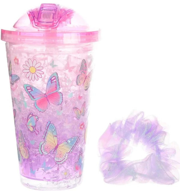 Efekt ten można jeszcze pogłębić wkładając kubek do zamrażalnika na 2-4 godziny. Zakręcany jest wypukłą nakrętką, dzięki której napój się z niego nie wyleje. Do kubka dołączona jest wielorazowa słomka oraz miękka gumka do włosów typu ‘scrunchie’.