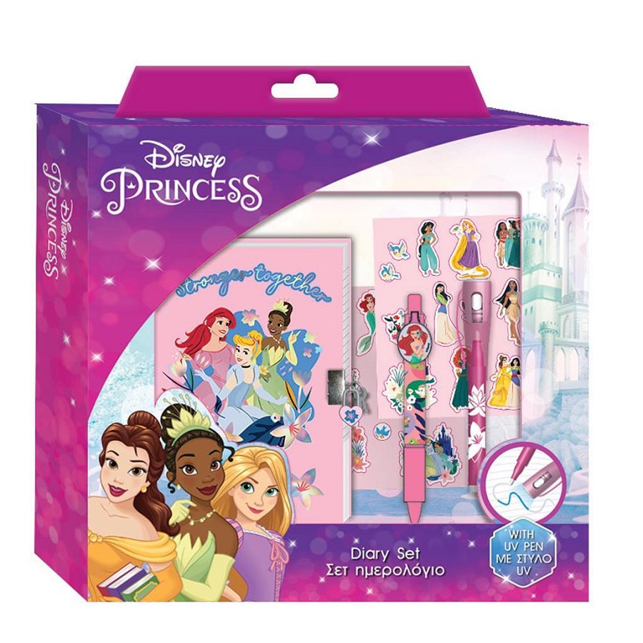 Pamiętnik na kłódkę długopis UV naklejki Princess