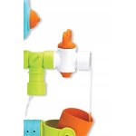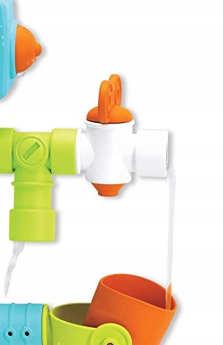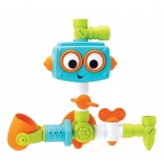 Wesoły robot na przyssawkę do zawieszenia nad wanną. Składa się z wielu elementów, które można dowolnie ze sobą łączyć. Będzie idealnym towarzyszem w kąpieli, dzięki wielu pokrętłom, młynkowi do przelewania wody oraz prysznicowi.