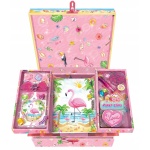 Zestaw zapakowany w ozdobne pudełko (szkatułkę) z 2 półeczkami, które można rozłożyć na boki, a pod nimi schować pamiętnik.