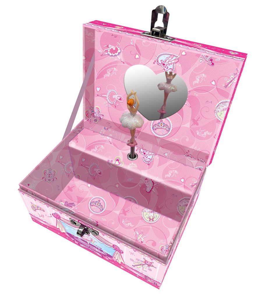 Pozytywka uruchamia się po otwarciu wieczka. Wewnątrz znajduje się lusterko, miejsce na różne drobiazgi oraz baletnica kręcąca się w rytm melodii „Dla Elizy”.