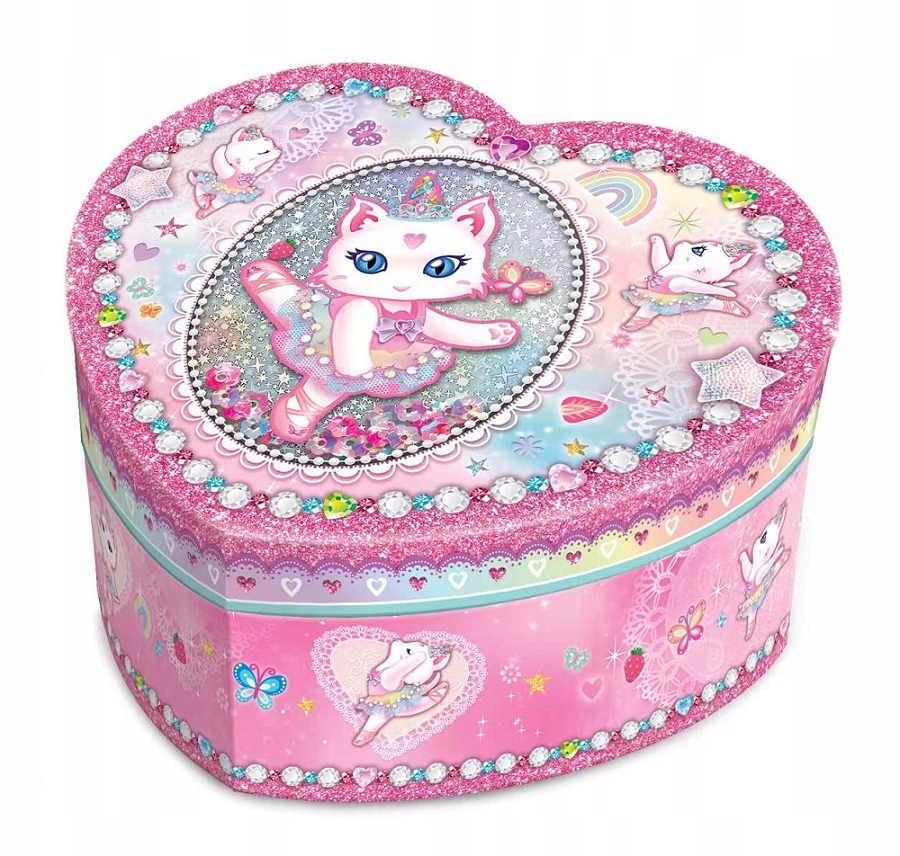 Śliczna szkatułka z pozytywką w kształcie serca. Umożliwia przechowywanie różnych drobiazgów oraz biżuterii.
