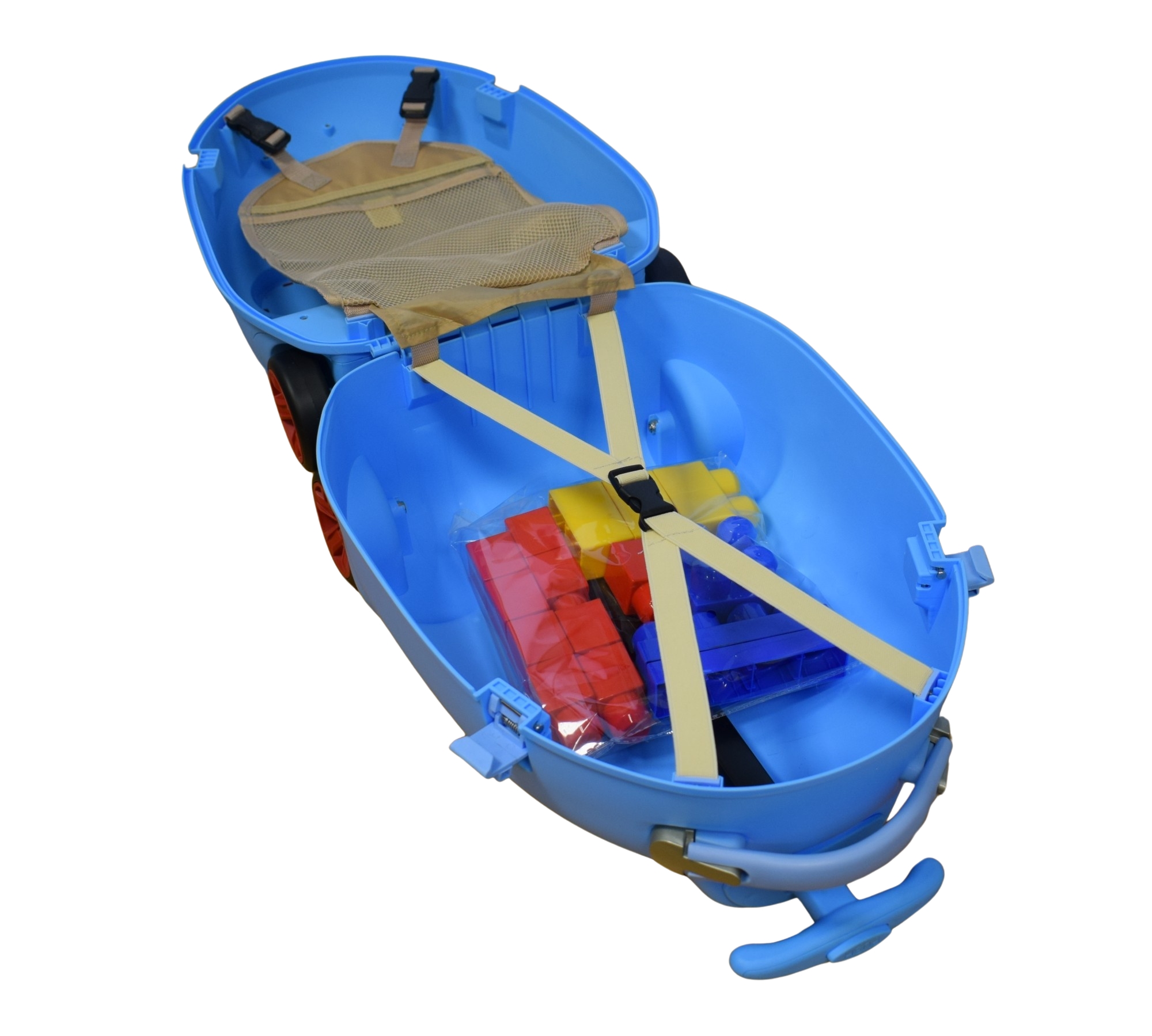 – dodatkowo w zestawie zestaw klocków do wpinania w przednią cześć walizki – świetna zabawa w czasie oczekiwania na podróż