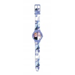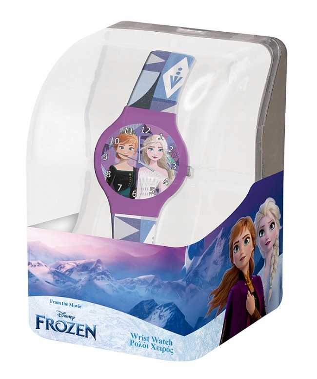 Zegarek analogowy z motywem Krainy Lodu. Posiada 3 wskazówki: godzinową, minutową i sekundową. Długość zegarka z paskiem: 22,5 cm. Średnica tarczy z obudową: 3,5 cm.