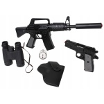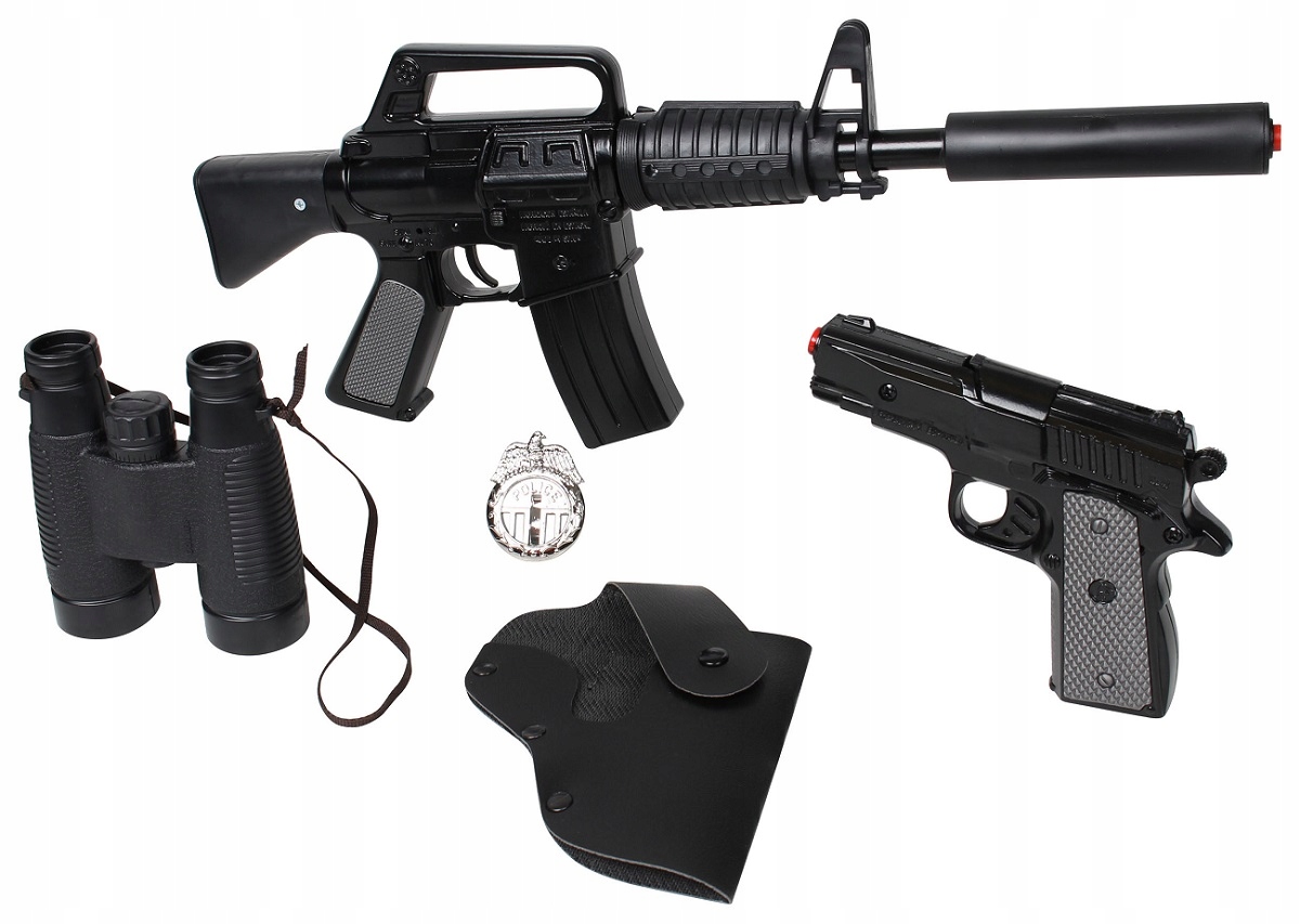 GONHER Zestaw Policjanta – 5 w 1 – karabin szturmowy, pistolet z kaburą, lornetka i odznaka
